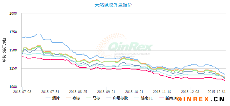 ●QinRex據泰國1月7日消息,因全球最大的橡膠買方市場中國經濟增長放緩,新加坡和東京橡膠期貨價格2015年已經降至七年內的最低水平。亞洲天膠主產國正在研究2016年減少出口的可能性,來提振橡膠價格。