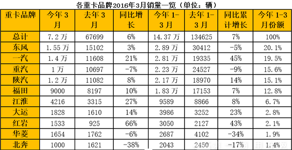 第一商用車網分析認為,3月份7.2萬輛的銷量,有兩重含義。