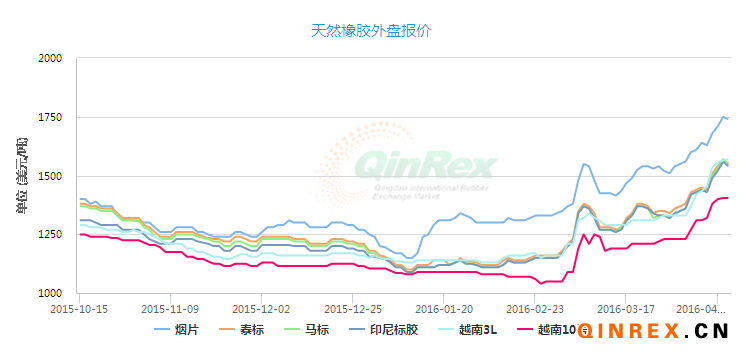本周青島保稅區天然橡膠美金現貨價格連續大幅上漲,主要是因產區處于季節性供應淡季,市場原料供應緊張,原料價格走高影響,本周市場標膠報價活躍,越南膠貨源稀少,鮮有報價。據了解區內庫存繼續下滑,下游工廠開工良好,按需采購,廠內庫存低位,后期需求預計較好。