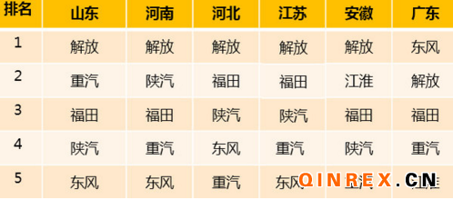 那么這幾個省中最受用戶歡迎的重卡品牌有哪些呢?