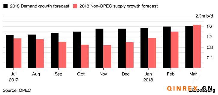據OPEC月度市場報告,OPEC連續第四個月上調對美國和其他產油國的供應增長預期。該前景表明,隨著新增產量出現,特別是在美國,OPEC和俄羅斯通過減產來消除全球供應過剩的努力,帶來適得其反的影響。