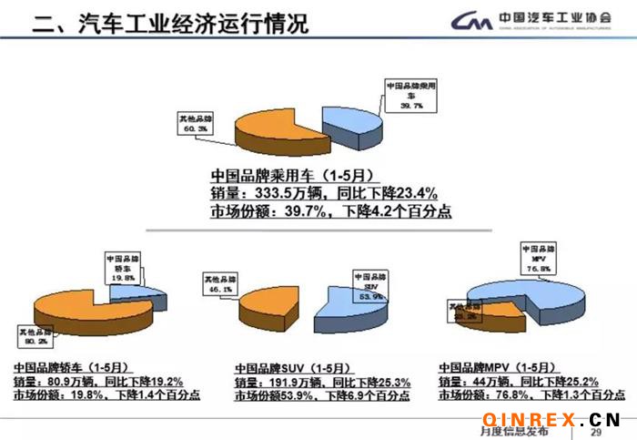 其中,乘用車銷量為156.1萬輛,環(huán)比下降0.9%,同比下降17.4%。至此,1-5月,國內(nèi)乘用車共銷售839.9萬輛,同比下降15.2%,國內(nèi)車市的寒冬仍然沒有緩解的跡象。