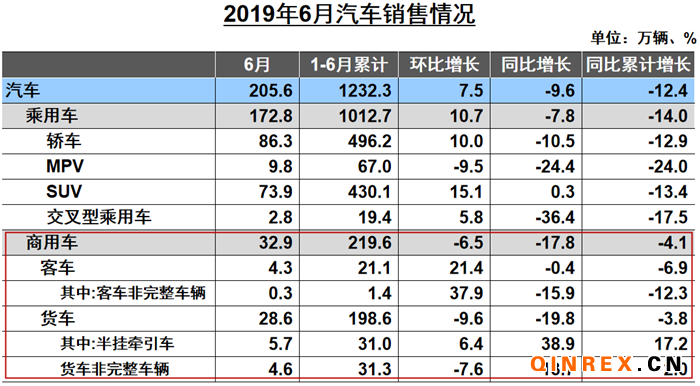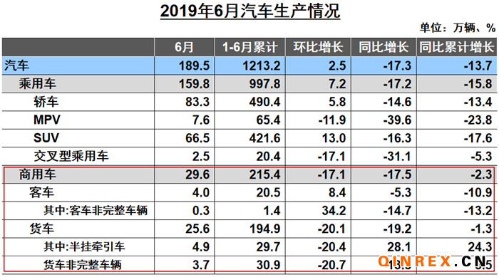 其中,商用車生產29.6萬輛,環比下降17.1%,同比下降17.5%;銷售32.9萬輛,環比下降6.5%,同比下降17.8%。