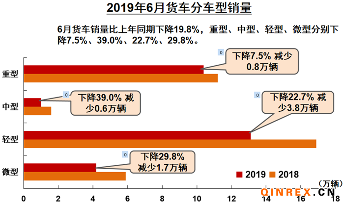 6月份,輕型貨車銷13.13萬輛,環比下降12.47%,同比下降22.7%;今年1-6月,輕型貨車銷95.8萬輛,同比下降1.74%。