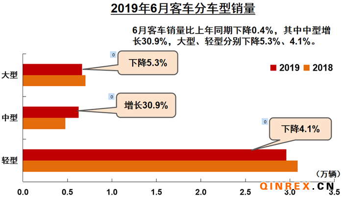 6月份,中型客車銷0.63萬輛,環比增長46.51%,同比增長30.9%;今年1-6月,中型客車銷2.7萬輛,同比下降12.90%。