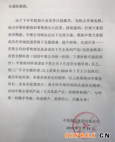 7月19日,中策橡膠集團有限公司向經銷商發函,布置促銷事宜。