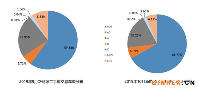 新能源二手車方面,2019年10月全國新能源二手車交易車型分析中,A00級車型占比66.77%;其次是A級車型,占比19.25%;各車型占比情況小微車型依然占絕對主力,其中A0級車型車型占比進一步提升;MPV占比與上月持平,占比1.66%;SUV車型占比有所下降,占比6.15%。新能源二手車主要銷售車型集中于A級及以下車型趨勢不變。