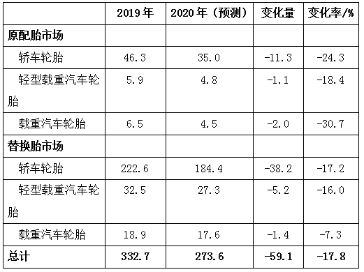 USTMA表示,2020年美國輪胎出貨量可能下降至2.736億條輪胎,比2019年的3.327億條下降17.8%。其中,原配胎出貨量預計下降24.5%;替換胎出貨量預計下降16.3%,載重輪胎出貨量可能最好,預計僅下降7.3%。