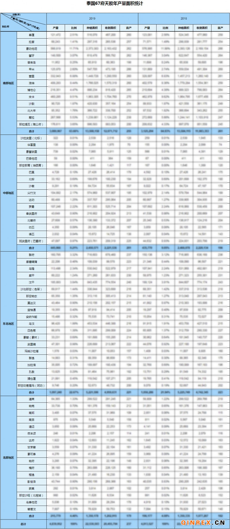 應廣大客戶需求,中國橡膠信息貿易網-“QinRex數據決策系統”于2020年12月23日,新增泰國67府天膠年產量面積統計數據庫內容。