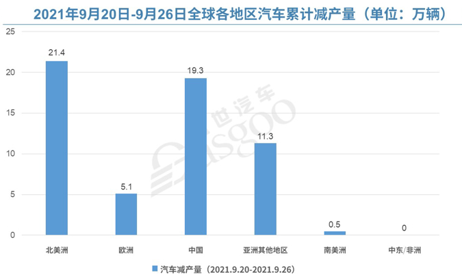 9月13日至19日,全球各地區的汽車生產計劃遭受的沖擊較前幾周較小,僅減產14.2萬輛汽車。但上周,全球又恢復了大規模減產的趨勢。