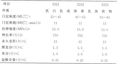氯丁橡膠CR2321、CR2322、CR2323的質量指標