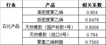 圖表 7:一些主要產品與原油價格的相關性