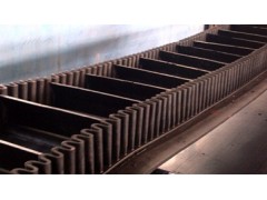 擋邊帶包括多種類型:①內置鋼制橫隔板的擋邊帶,包括基帶、基帶兩側的擋邊、以及擋邊之間的橫隔板,所述橫隔板包括鋼制內襯板,所述鋼制內襯板外包裹橡膠層。由于本實用新型采用了上述結果,內置的鋼制內襯板大大增強了擋邊輸送帶的橫向剛性,而且無需采用螺栓連接,在劣勢的環境下使用時也不容易與基帶脫落,即使其外面的橡膠層有所破損,也不影響輸送物料,可以達到免于維護的效果。②埋置有防撕裂層的擋邊帶,是為了解決現有技術存在的擋邊在使用中經常撕裂或破損。防撕裂層不僅可以可靠地保護擋邊不被撕裂,而且又有良好的曲撓性。增加了擋邊的強度和抗撕裂性能,提高了擋邊帶的使用壽命,而且具有耐高溫、耐阻燃性能。③抗物料沖擊的擋邊輸送帶,包括基帶和設在基帶上的擋邊和橫隔板,所述橫隔板內嵌置有骨架層。④鋼絲繩芯的擋邊帶,是為了解決現有技術存在的鋼絲繩芯擋邊輸送帶橫向剛性較差,局部受壓易造成橫向變形等技術問題。